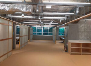 間仕切りが動く部屋を作ることにより、チームの大きさに合わせて部屋の大きさを変えられるデザイン。